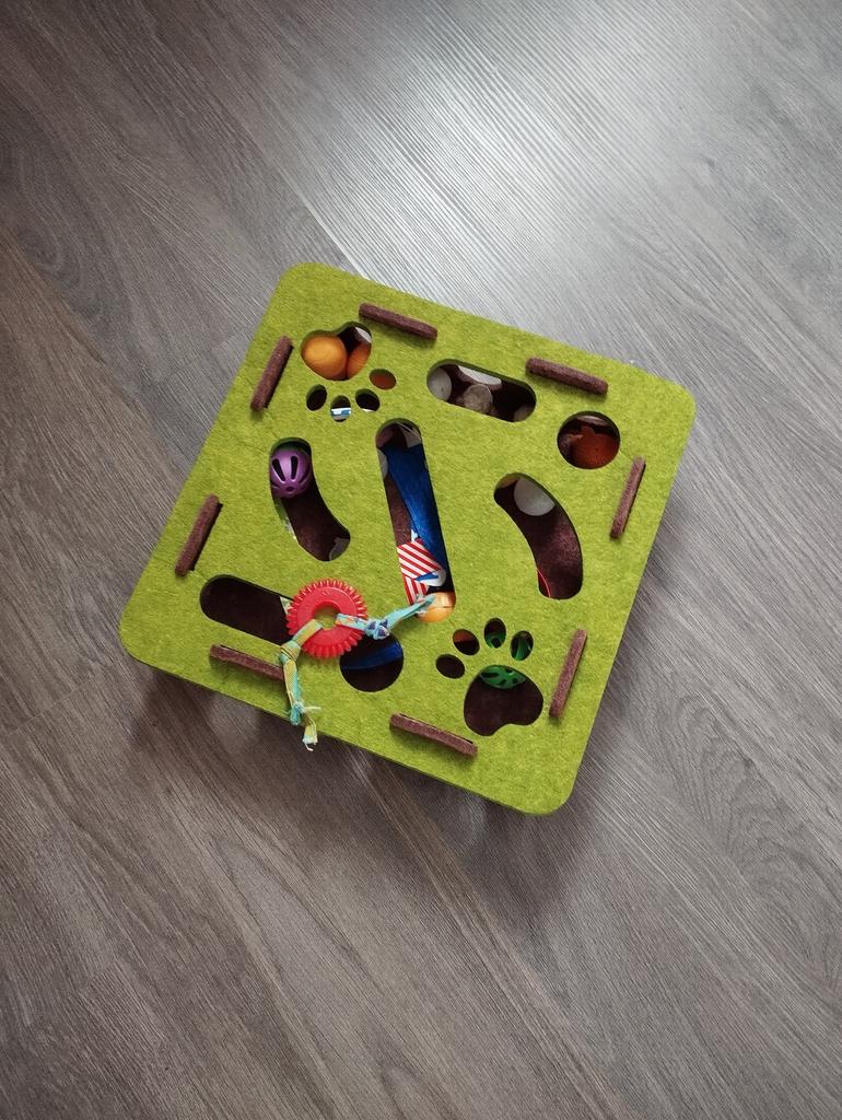 Puzzle Play for Smart Cats: Crafted with a felt maze and concealed paths, this enrichment box challenges your cat's intellect, encouraging exploration and interaction with the bell balls, providing endless amusement and mental stimulation.
