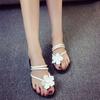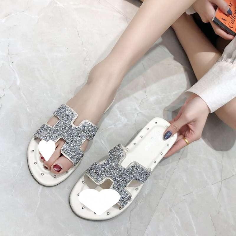 Korean Version 2025 Summer New Fashion Outer Slippers Women's Rhinestone Hong Kong Style Flat Bottom One-word Drag Beach Sandals Women