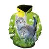 Autumn 3D Cute Cat Printed Hoodies Fashionable Casual Sports Long Sleeved Men's Hooded Sweatshirts