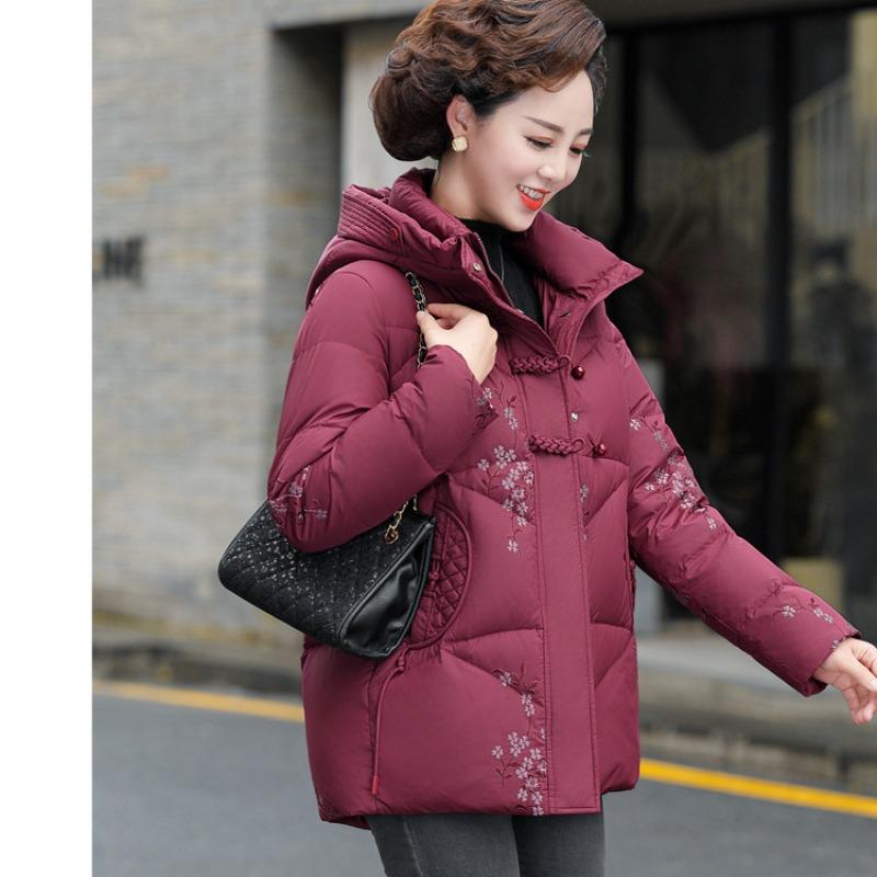 Middle Aged Down Jacket Female Mother Winter Clothing Fattened White Duck Down Grandma Clothes Old Lady Embroidered Coat Year Old