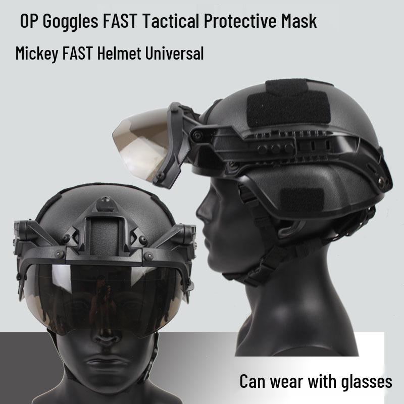 Adjustable FAST Tactical Helmet with Explosion-Proof Goggles - Compatible with MICH and Myopia Glasses for Cross-Border Ops and Riot Control.