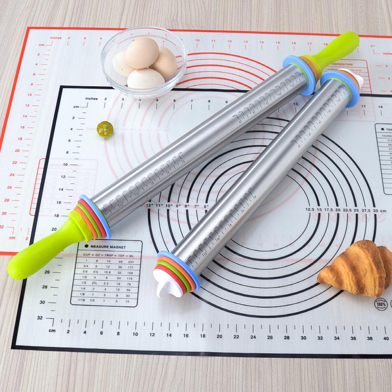 17" Adjustable Stainless Steel Rolling Pin with Thickness Scale