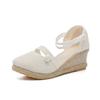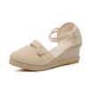 2025 New Korean Style Women's Wedge Heel Sandals: Comfortable Pointed Toe Buckle Linen Casual Sandals