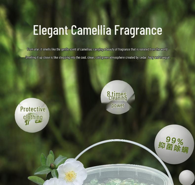 Camellia 5-in-1 Laundry Pods: Long-Lasting Scent, Powerful Stain Removal, Perfume-Infused Detergent Balls