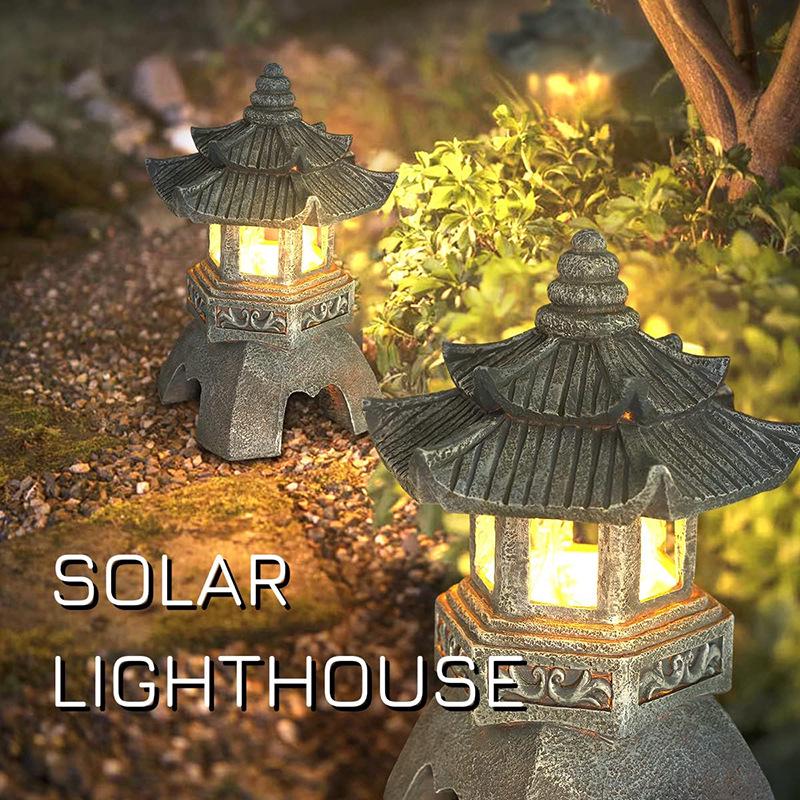 Zen Solar Stone Pagoda Lantern - Outdoor Resin Ornament for Garden and Courtyard Decor
