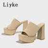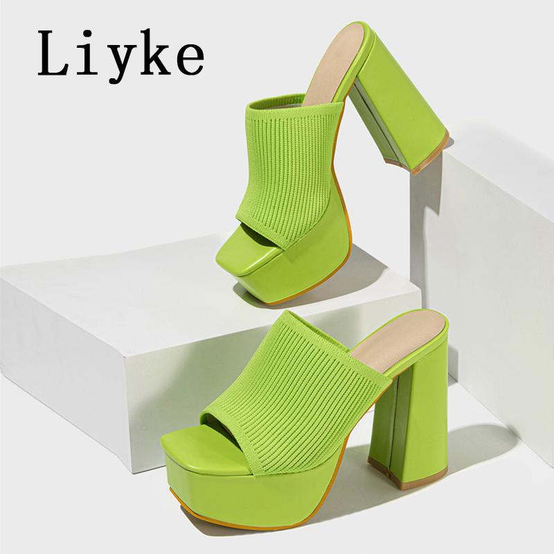 Fashion Liyke Summer Fashion Green Knitting Women's Slippers Banquet Nightclub Platform Chunky High Heels Slide Mule Shoes Female Sandal