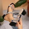Fashion Woman Mid Heel Slippers Fashion Square Toe Heels Slides Shoes 2025 Summer Trend Woman Sandals Crystal Straps Zapatos De Mujer
