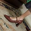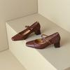 Fashion French Retro Square Head with A Line High Heels New Chunky Kitten Mary Jane Women's Shoes