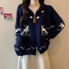 Zipper Lapel Jacquard Sweater Cardigan Women's Autumn and Winter Lazy Soft Waxy Top High-end Warm Knitted Jacket