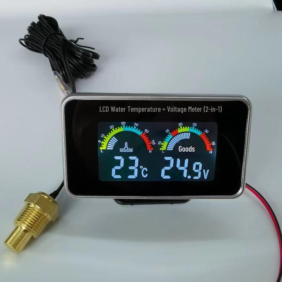 12V/24V Car & Truck Dual Electronic Water Temperature Gauge with LCD Voltmeter