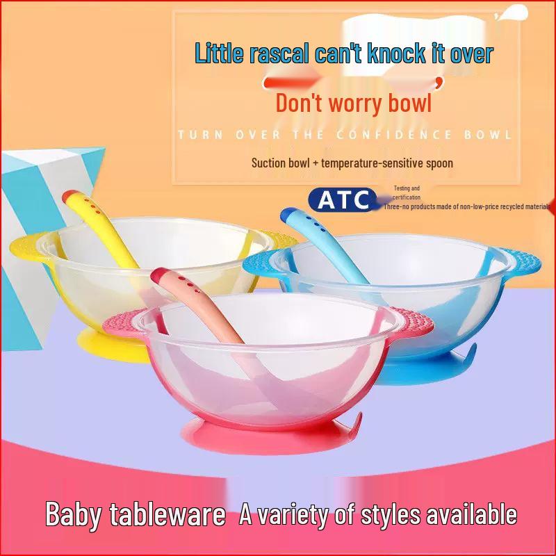 Temperature-Sensitive Baby Tableware Set: Suction Bowl, Soft Spoon, and Fork for Newborns