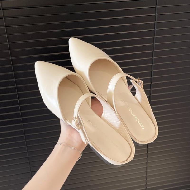 Fashion 2025 Spring Summer New Baotou Half Slippers High-heeled Shoes Fashion Shallow Mouth Elegant Mules Solid Color Slipper Sandals