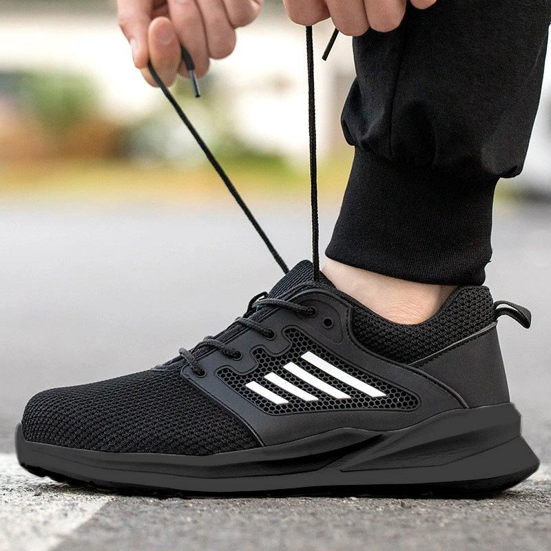 Fashion Work Safety Shoes Lightweight Breathable Mesh Work Sneakers Steel Toe Work Shoes Black Protective Work Sneakers for Men Women
