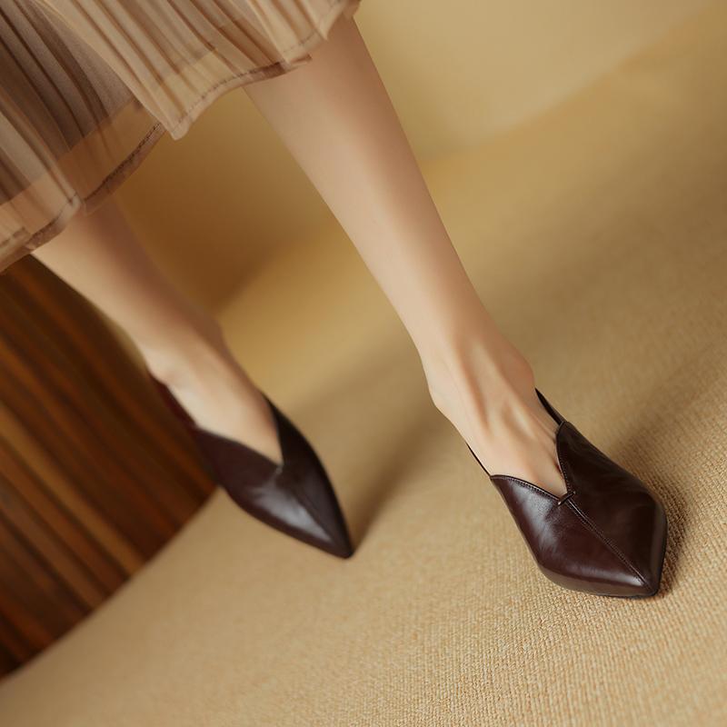 Fashion 2024 Spring New Split Leather Women Shoes LEISURE Women Slip-On Pumps High Heels Pointed Toe Heels Shoes Office Ladies Shoes