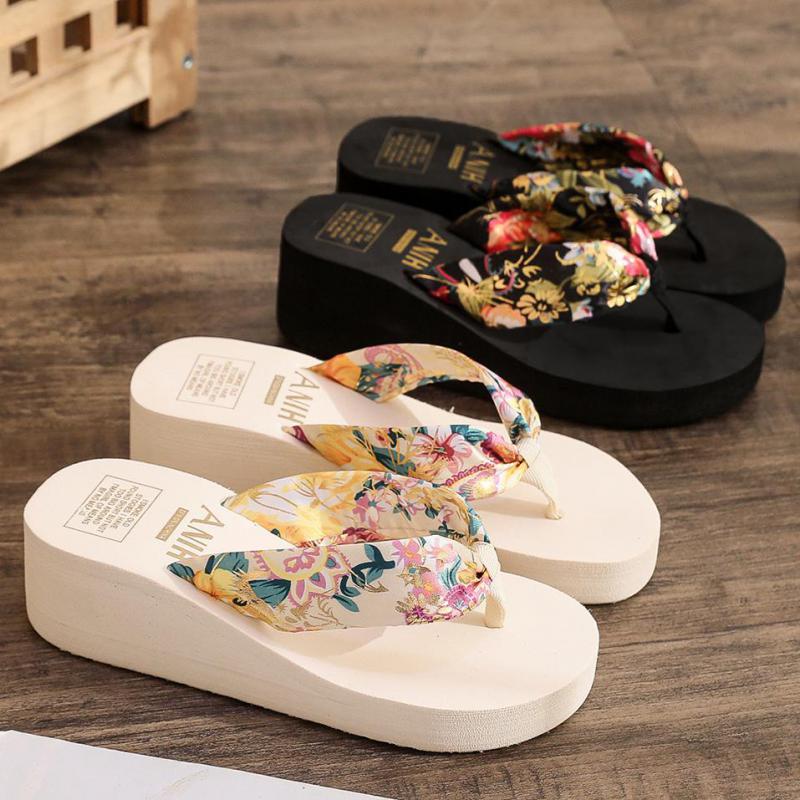 Fashion Summer Eva Black Platform Slippers Chunky Thick Soft High Heels Wedges Sandals Slippers Indoor Home Outdoor Women's Flip Flops