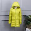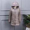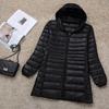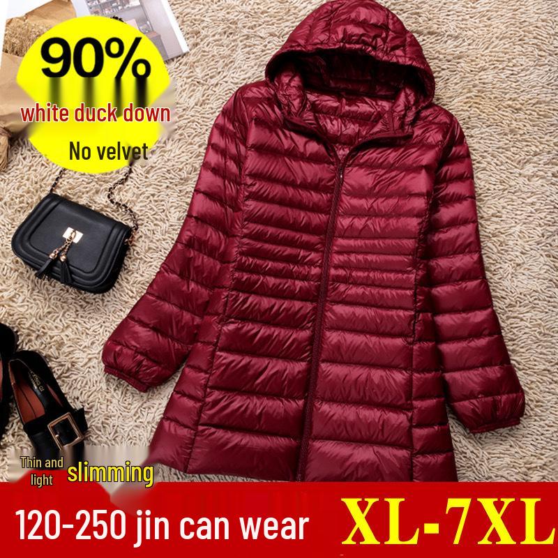 Experience comfort and style in this plus-size women's lightweight down jacket. Designed to fit up to 200 lbs, this mid-length jacket offers a slim and flattering silhouette. Filled with duck down for effective insulation, despite its thin outerwear thickness, it provides warmth without the bulk. The jacket features a hood and long sleeves for extra coverage, while both the outer material and the fur are crafted from high-quality polyester for durability and softness. Ideal for chilly days, this piece combines practicality with a sleek design for the modern woman.