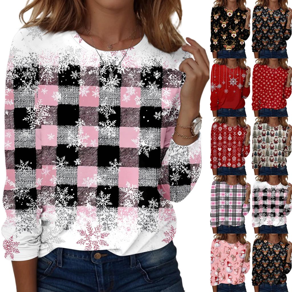 Women's Fashion Casual Long Sleeve Christmas Printed Round Neck Top