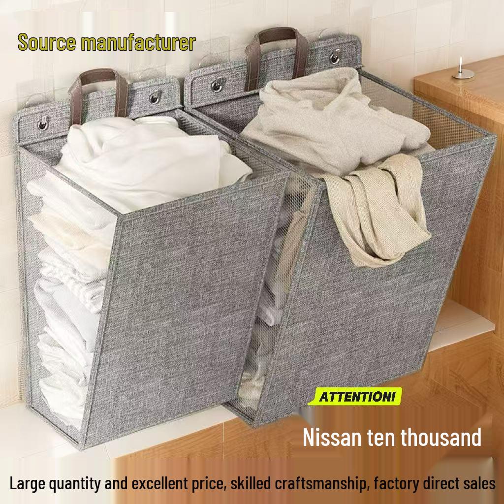 Foldable Wall-Mounted Waterproof Cotton Linen Laundry Basket Hamper for Bathroom Storage