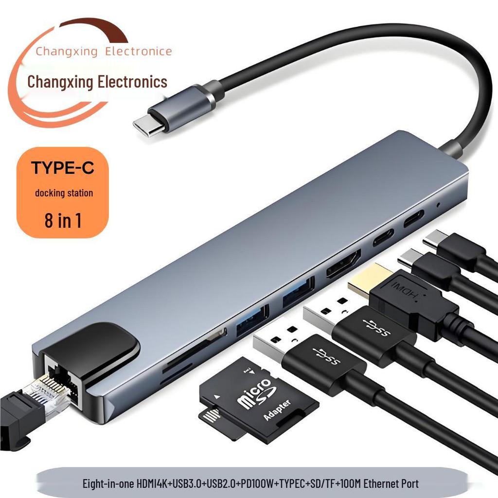 8-in-1 Type-C Hub: Multifunctional Card Reader & USB Network Expansion Dock