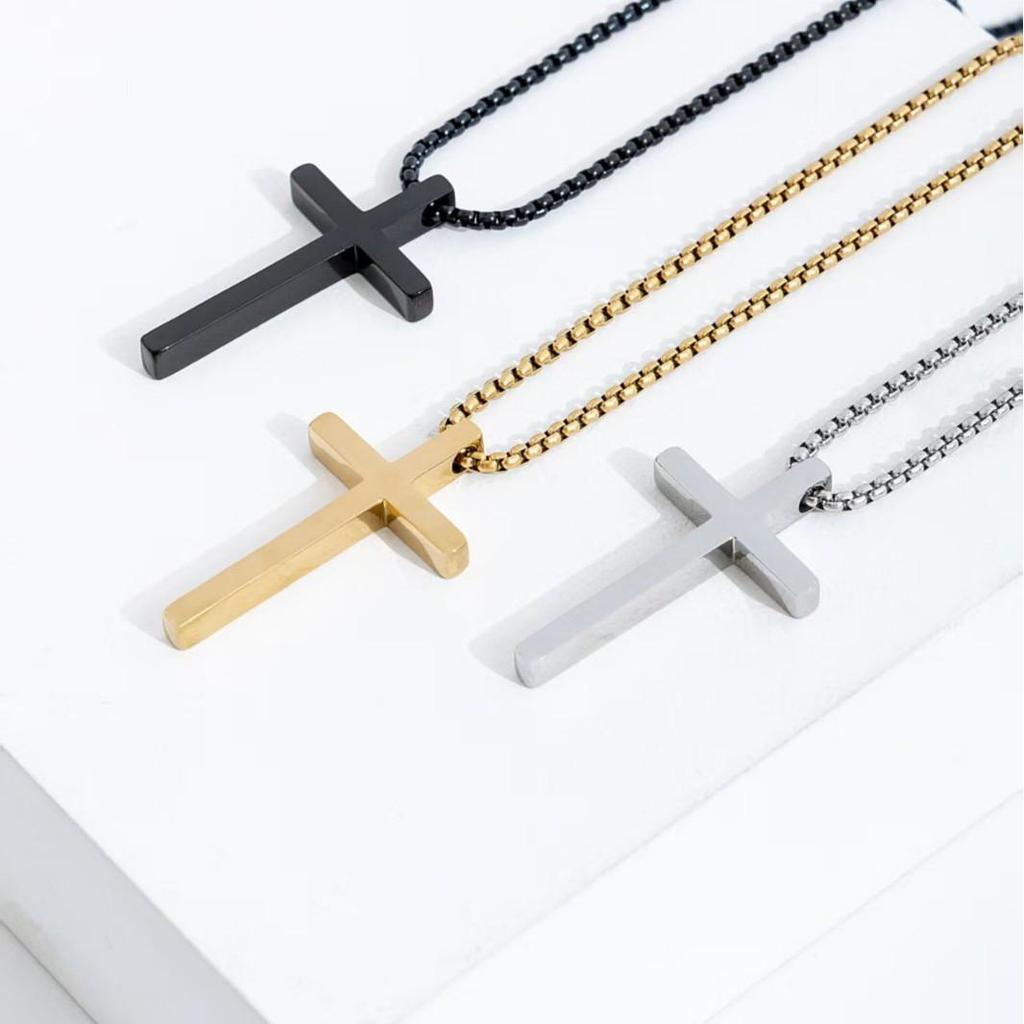 Men's Stainless Steel Cross Pendant Necklace - Polished Titanium Steel, Versatile and Stylish