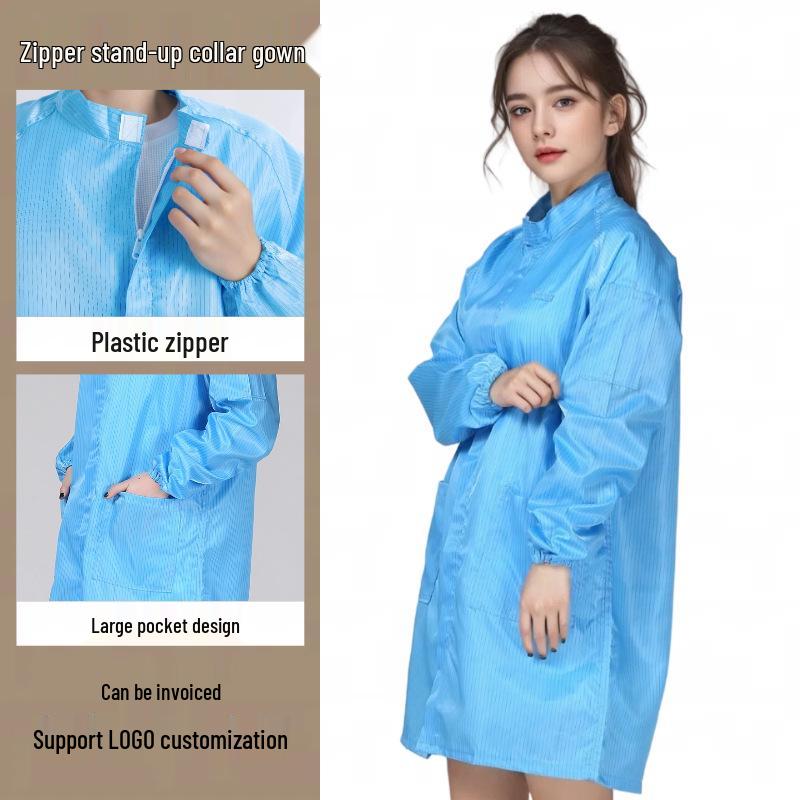 Unisex Anti-Static Cleanroom Smock with Zipper & Stand-Up Collar - Blue/White Work Suit