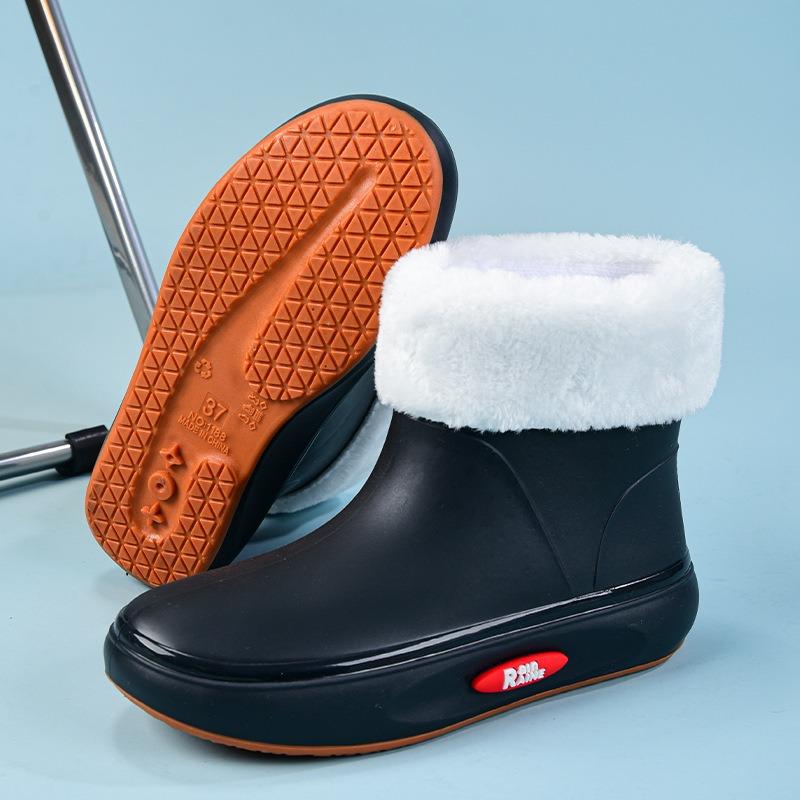 Fashion Low-tube Rain Shoes, Women's Beef Tendon Soles, Velvet Waterproof Shoes, Non-slip Rain Boots, Rubber Shoes for All Seasons