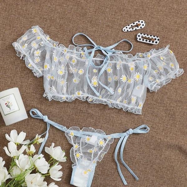 Japanese Vintage Lace Ribbon Wirefree Bra Set for Women