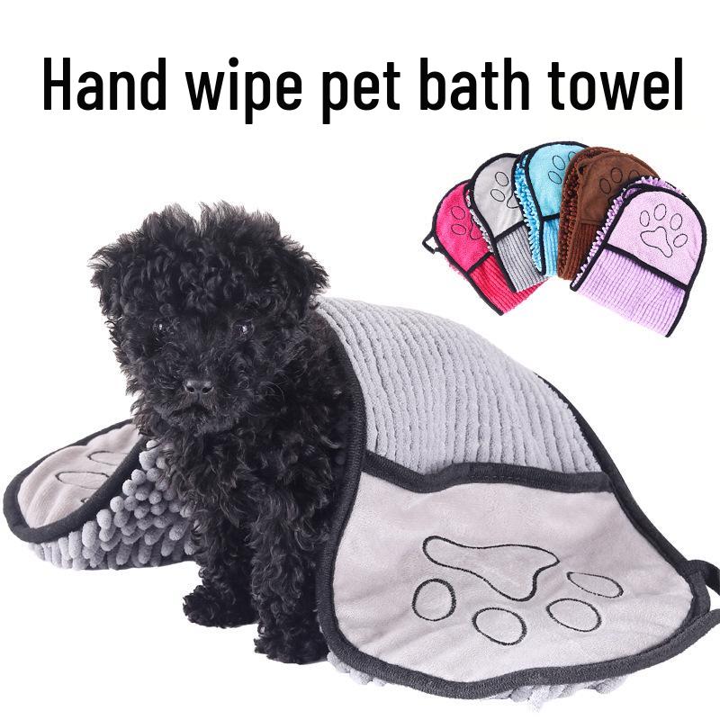 Chenille Dog & Cat Exfoliating Bath Towel Glove - Absorbent & Quick-Drying