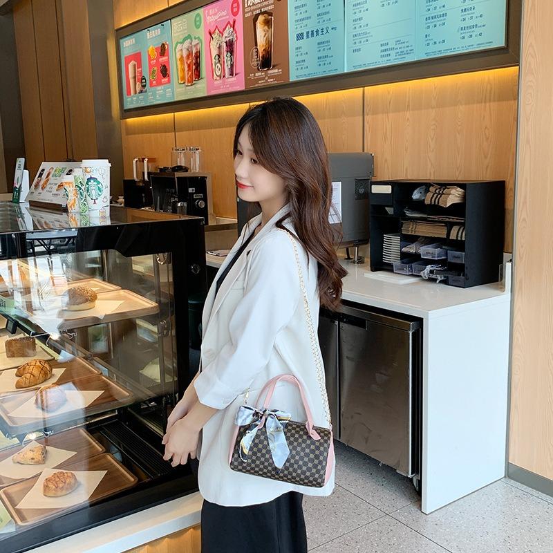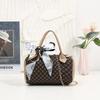 Retro Fashion Silk Scarf Printed Shoulder Crossbody Portable Women's Bag New Chain Cylinder Bag