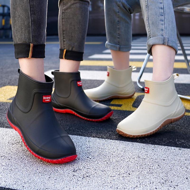 Fashion Rain Shoes Men's Short Tube Velvet Removable Four-season Comfortable Non-slip Kitchen Rubber Shoes Waterproof Car Wash Shoes Men