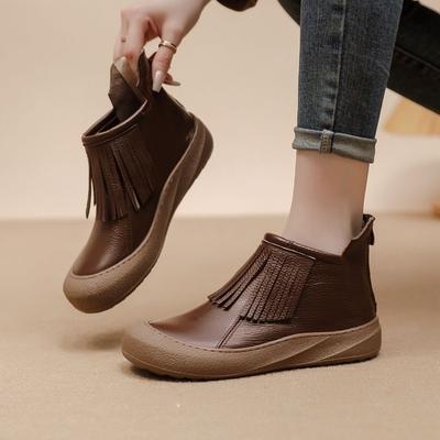 Spring Autumn Genuine Leather Shoes Women Ankle Boots Tassel Design Soft Brand Ladies Fashion Boots Plus Size 41