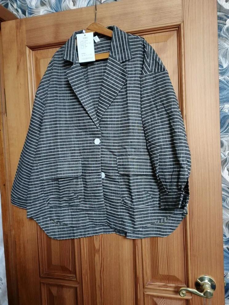 DIMANAF 2025 New Jackets Women Coat Stripe Linen Thin Vintage Outerwear Long Sleeve Spring Loose Button Coat