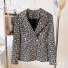 2025 European & American Celebrity Women's Slim Fit Double-Breasted Geometric Jacquard Suit Jacket with Lion Buttons.
