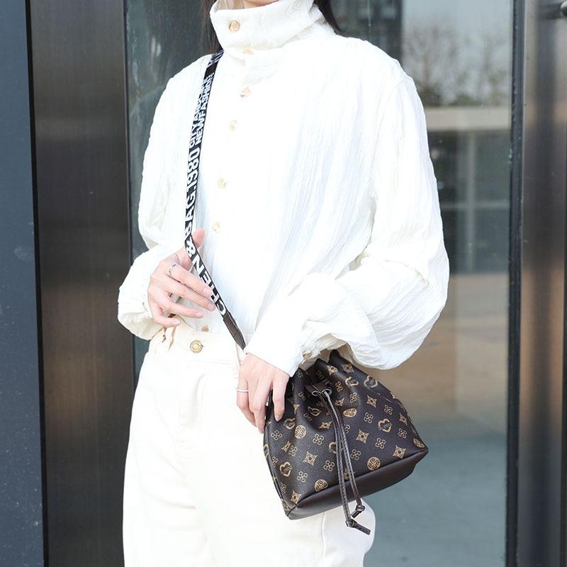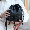 New Women's Drawstring Bucket Bag Fashionable Letter Wide Shoulder Strap Commuter Bag Trendy Shoulder Bag One Piece