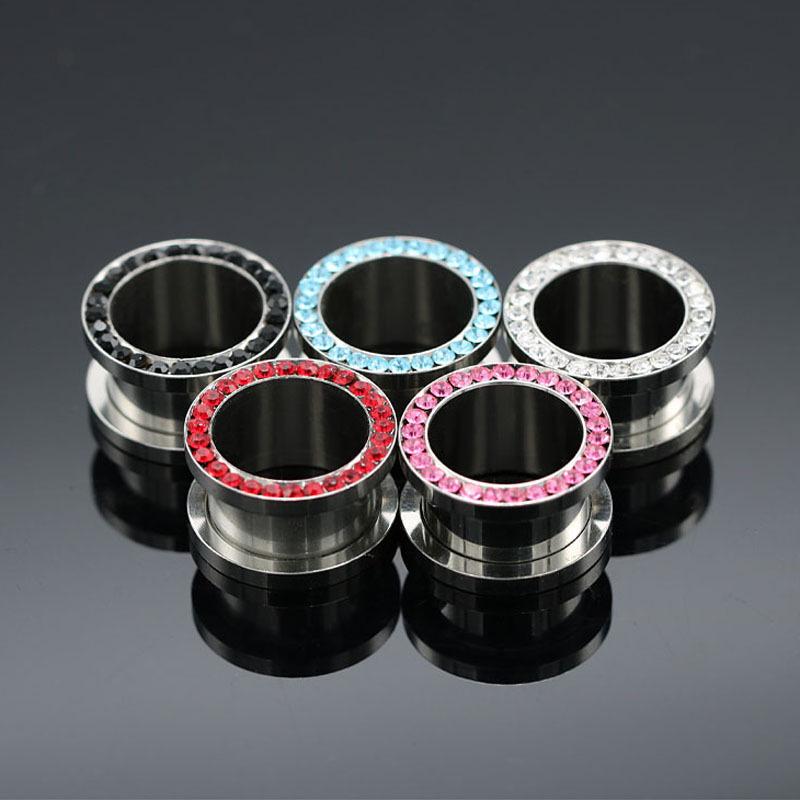 Stainless Steel Rhinestone-Inlaid Ear Expander Pulley Gauge Jewelry, 3-14MM