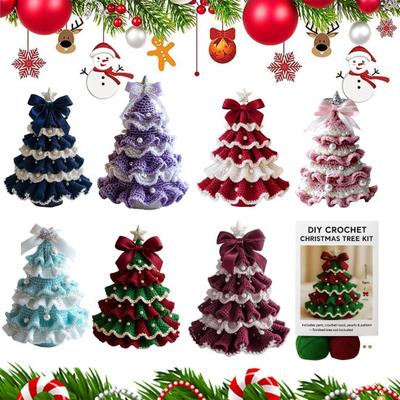 Handmade Crochet Christmas Tree DIY Xmas Tree Crochet Craft Starter Set with Bow And Faux Pearl for Beginners Knitting Holiday Decoration