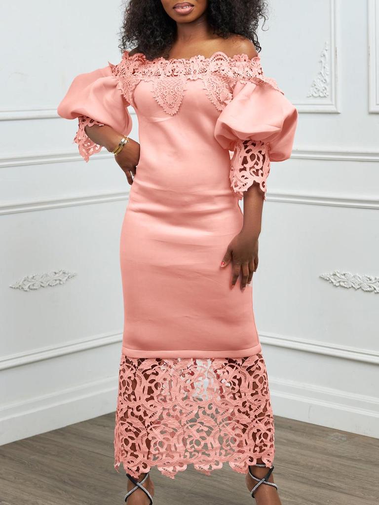 Elevate your elegance with this stunning banquet dress, crafted from high-quality polyester for a luxurious feel. This exquisite piece features an alluring one-shoulder design complemented by delicate lace detailing. The lantern sleeves add a touch of drama and sophistication, making it perfect for formal occasions and special events. Experience a blend of style and comfort with this unique and fashionable dress.