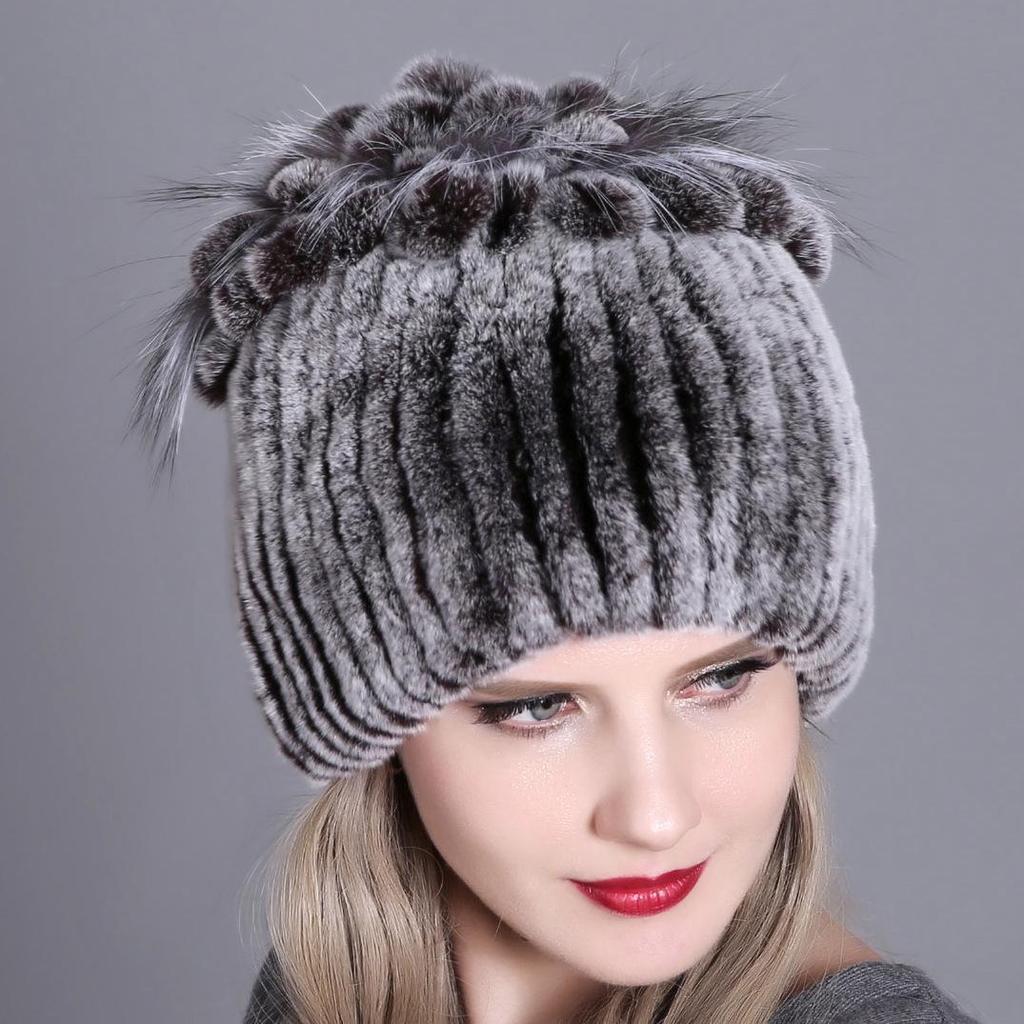 Colorful Rex Rabbit Fur Knitted Women's Warm Winter Hat