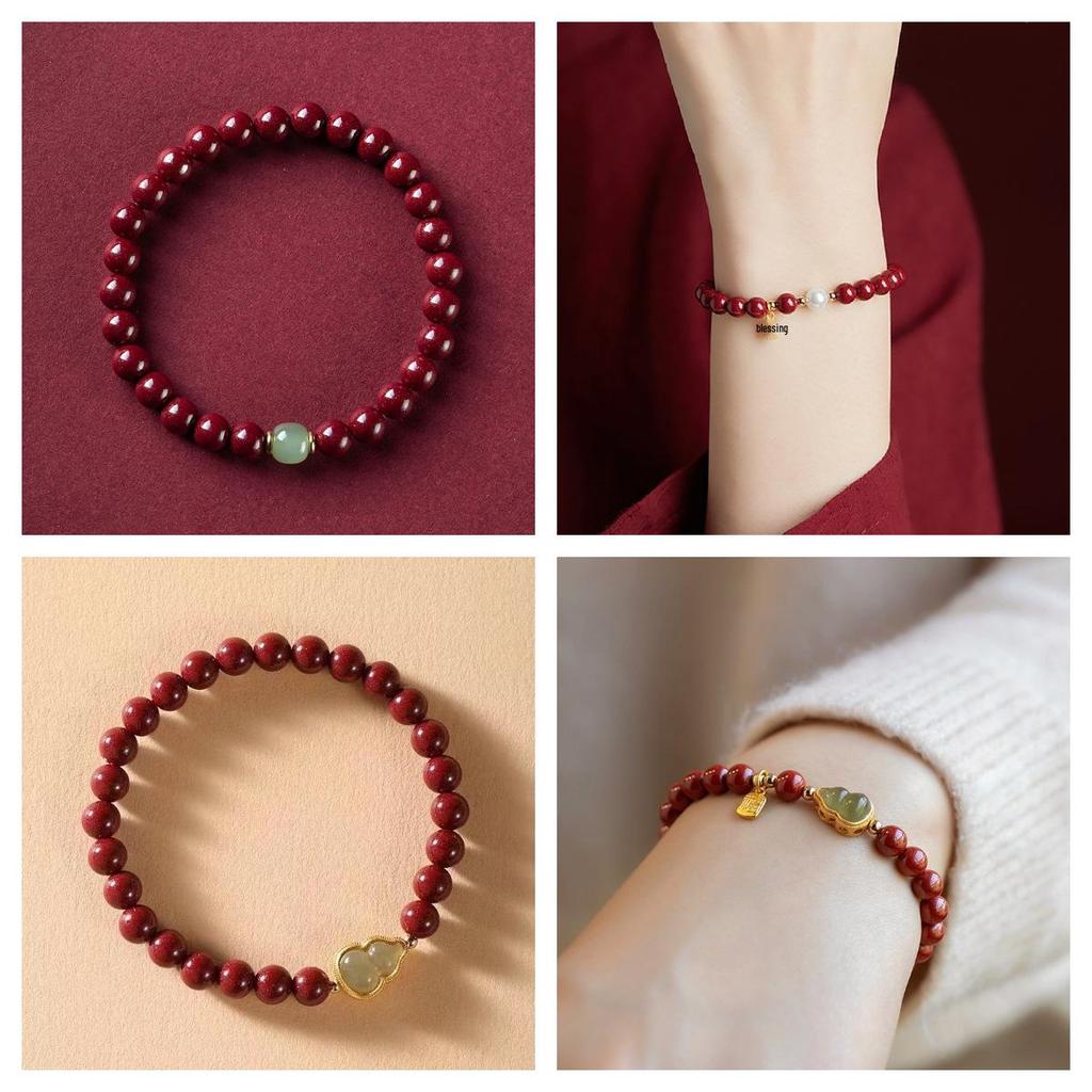 Cinnabar Ruyi Gourd Bracelet - Single Circle Zisha Fulu Peace Bracelet for Women, Benming Year