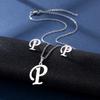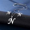 Stainless Steel Letter Pendant Necklace Unisex Jewelry Set Letter Earrings Party Accessory Present for Fashion Lover