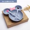 Cute Children's Wheat Straw Tableware Set: Rice Bowl, Eating Plate, Spoon, and Fork - Perfect Baby Gift