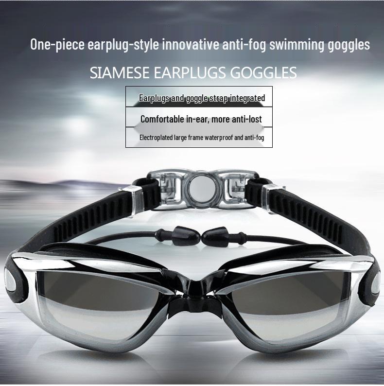 HD Waterproof Anti-Fog Swim Goggles with Large Electroplated Mirror Lens and Earplugs for Men and Women