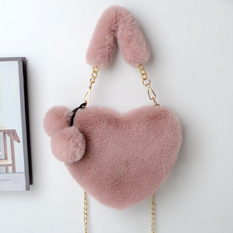 Imitation Rabbit Plush Portable Love Bag Single Shoulder Large Capacity Women's Plush Oblique Span Bag Cute Fashion Portable Heart Bag