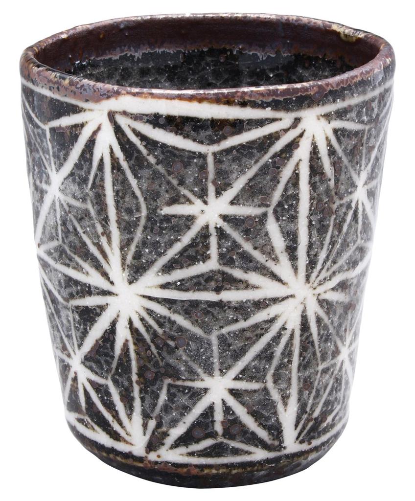 Mino Ware Teacup by Shigehisa Miura, Approximately 160ml Capacity, Nezumi Shino Pattern with Hemp Leaf Design, Made In Japan, Product Number 060-0060