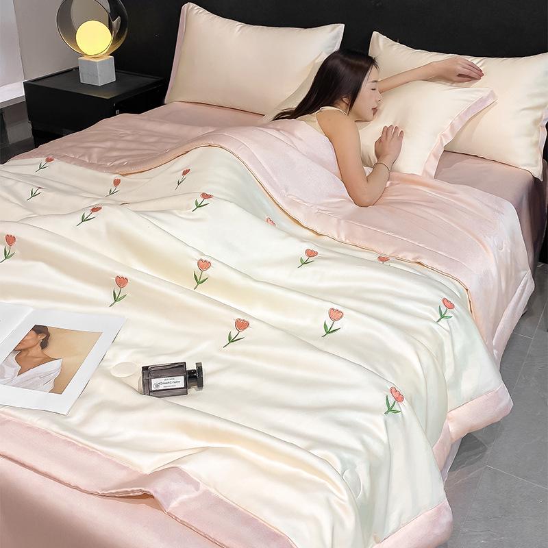 Silky Summer Ice Silk Quilt Set: Lightweight, Washable, and Embroidered