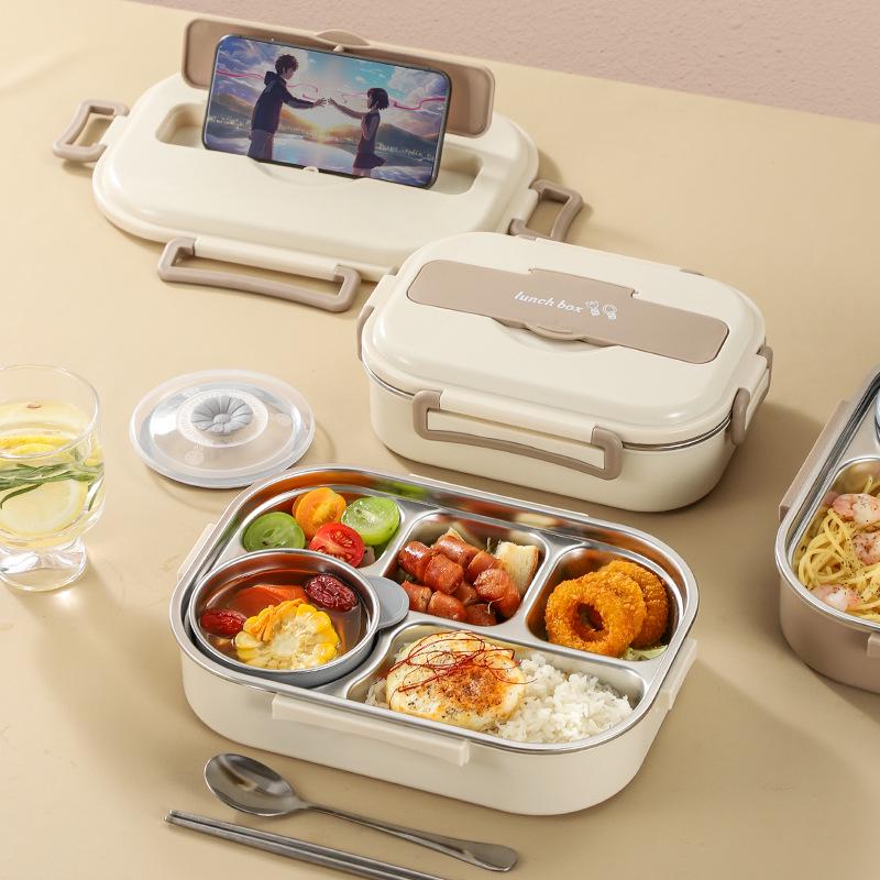 304 Stainless Steel Insulated Bento Lunch Box with Built-in Soup Bowl and Five Compartments
