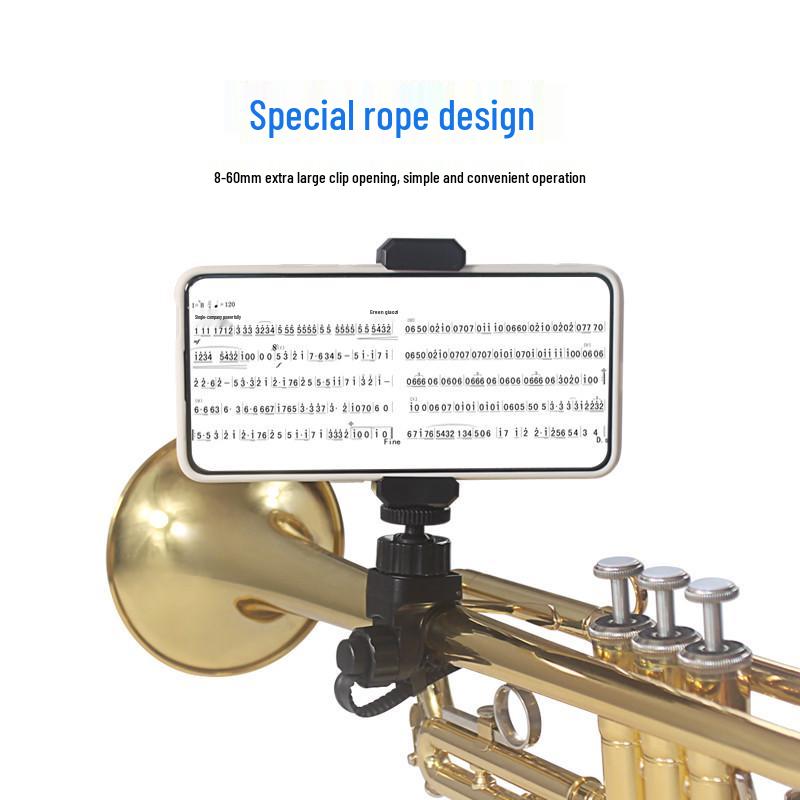 360° Rotating Trumpet Instrument Stand & Phone Holder with Lanyard for Sheet Music & Live Streaming