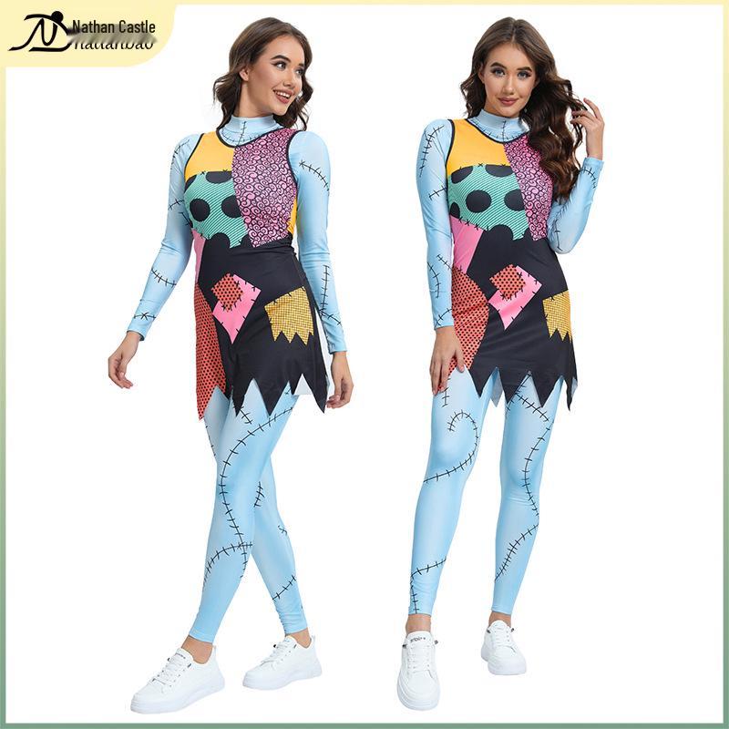 Step into a world of eerie enchantment with this hauntingly beautiful cosplay dress inspired by a beloved Halloween classic. Designed for women, this European and American-style costume captures the whimsical essence of Sally's iconic look with its intricate prints. Crafted from a soft blend of milk silk and artificial silk material, the dress offers a comfortable fit while maintaining an air of mystical allure. Perfect for Halloween festivities or themed events, this dress invites you to embody the enchanting charm of Sally with every detailed stitching.