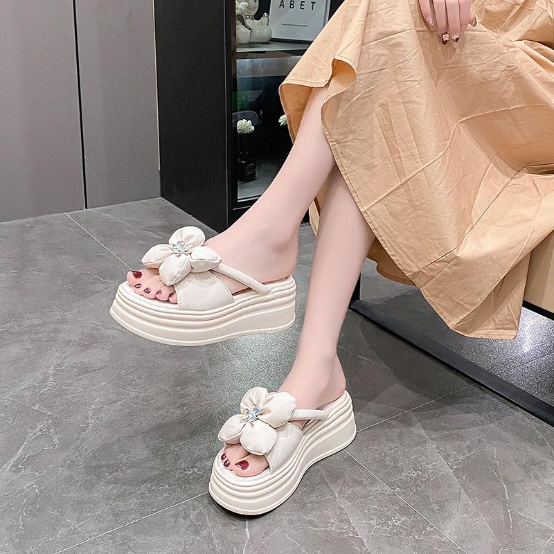 Platform Slippers Women's Summer 2025 New Versatile Outer Wear Heightening Muffin One-word Drag High-end Flower Sandals Women