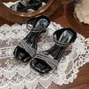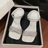 Fairy Wind French Rhinestone Word with Square Head Cool Slippers Female Summer Wear Stiletto High Heels Temperament Open-toed Sandals